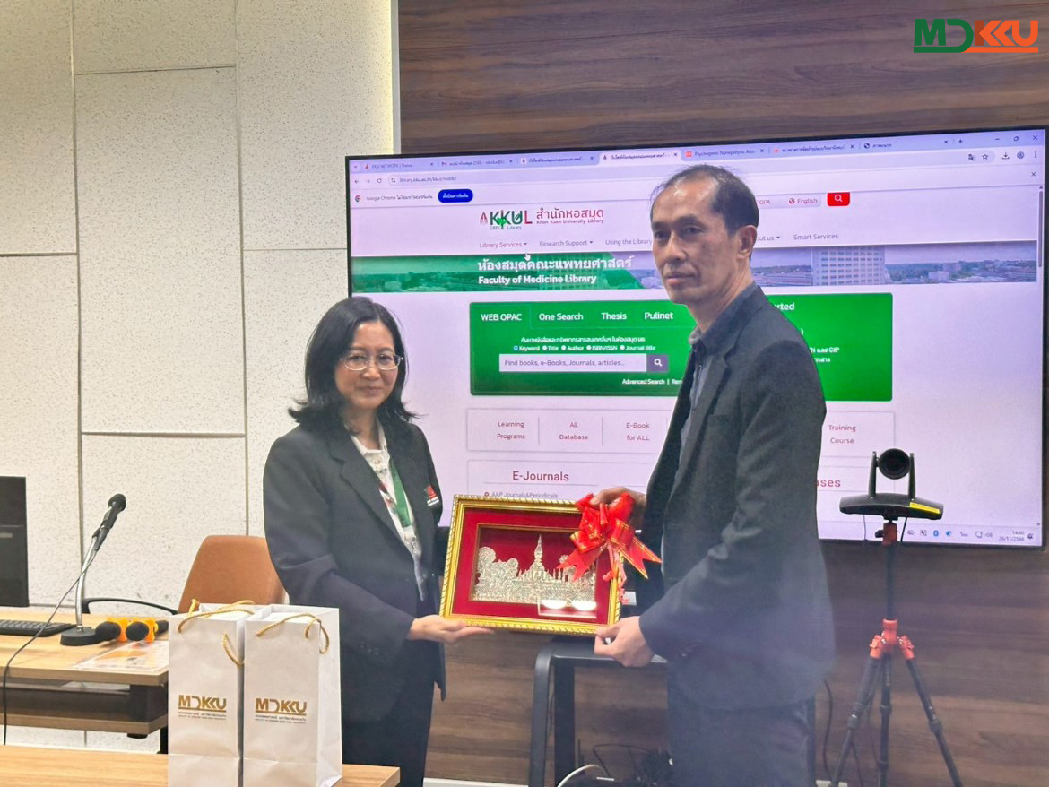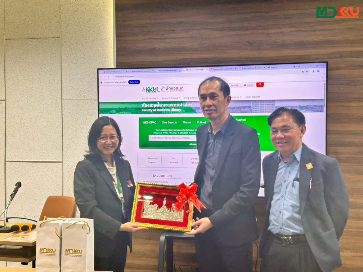วันที่ 26 พฤศจิกายน 2568: คณะแพทยศาสตร์ มหาวิทยาลัยขอนแก่น (มข.) ให้การต้อนรับ คณะผู้แทน 13 คนจากมหาวิทยาลัยวิทยาศาสตร์สุขภาพ สปป.ลาว ในการศึกษาดูงานด้าน การบริหารห้องสมุดและการพัฒนาทรัพยากรดิจิทัล การเยือนครั้งนี้มุ่งสร้างรากฐานการพัฒนาห้องสมุดและการศึกษาในอนาคตของมหาวิทยาลัยวิทยาศาสตร์สุขภาพ สปป.ลาว