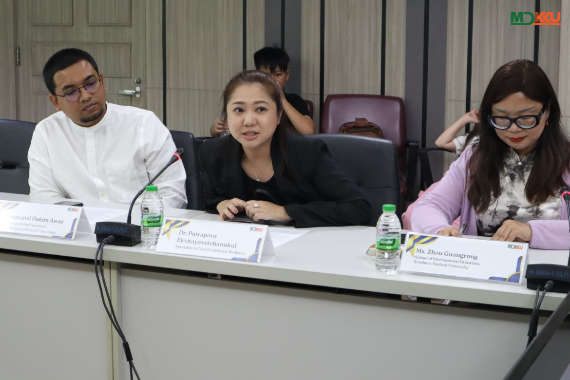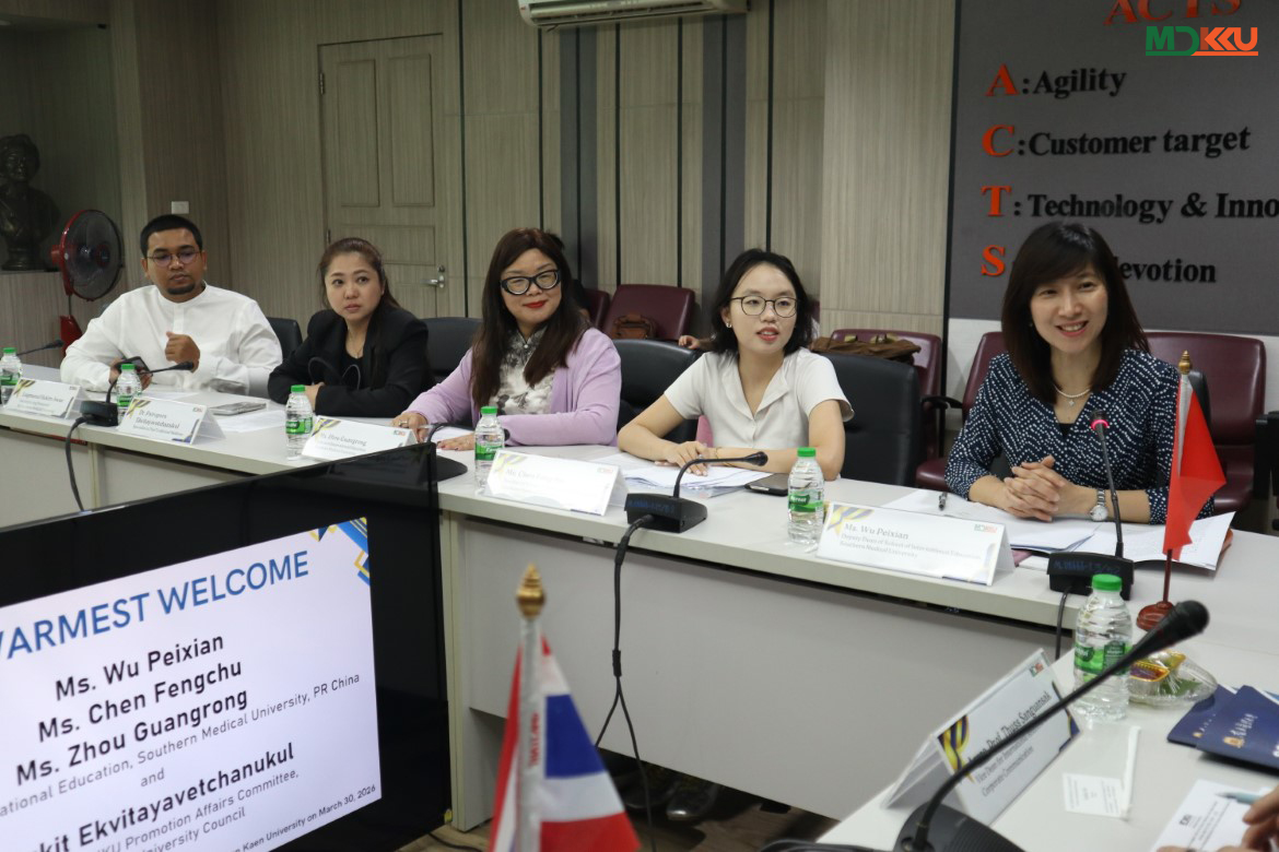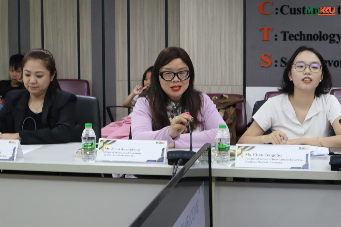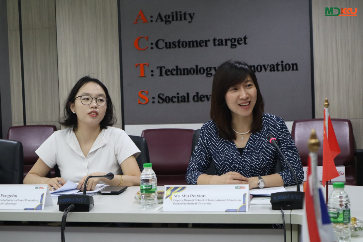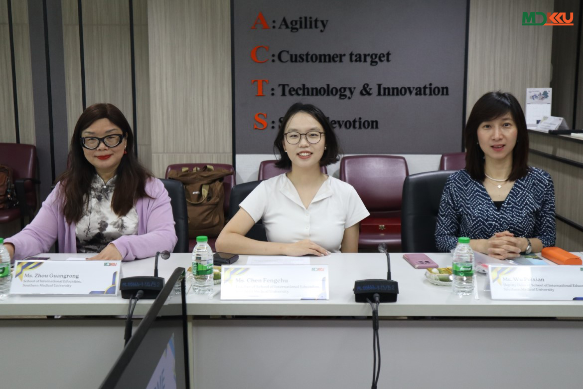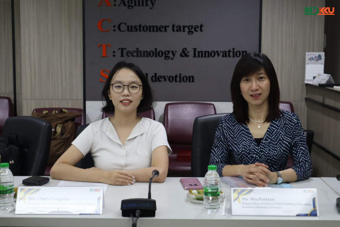 คณะผู้แทนจาก Southern Medical University นำโดย Ms. Wu Peixian, Deputy Dean of the School of International Education พร้อมด้วย Ms. Chen Fengchu, Teacher of the School of International Education และ Ms. Zhou Guangrong จาก School of International Education พร้อมคณะ