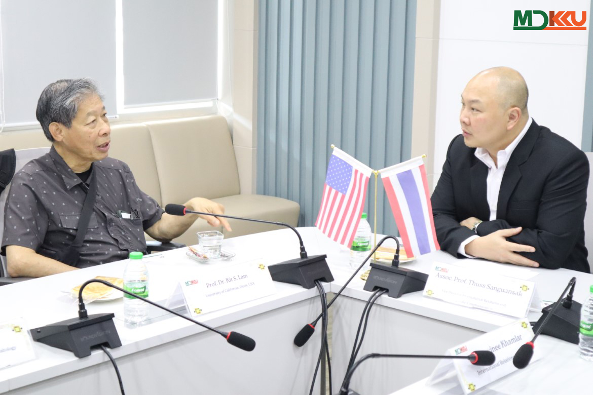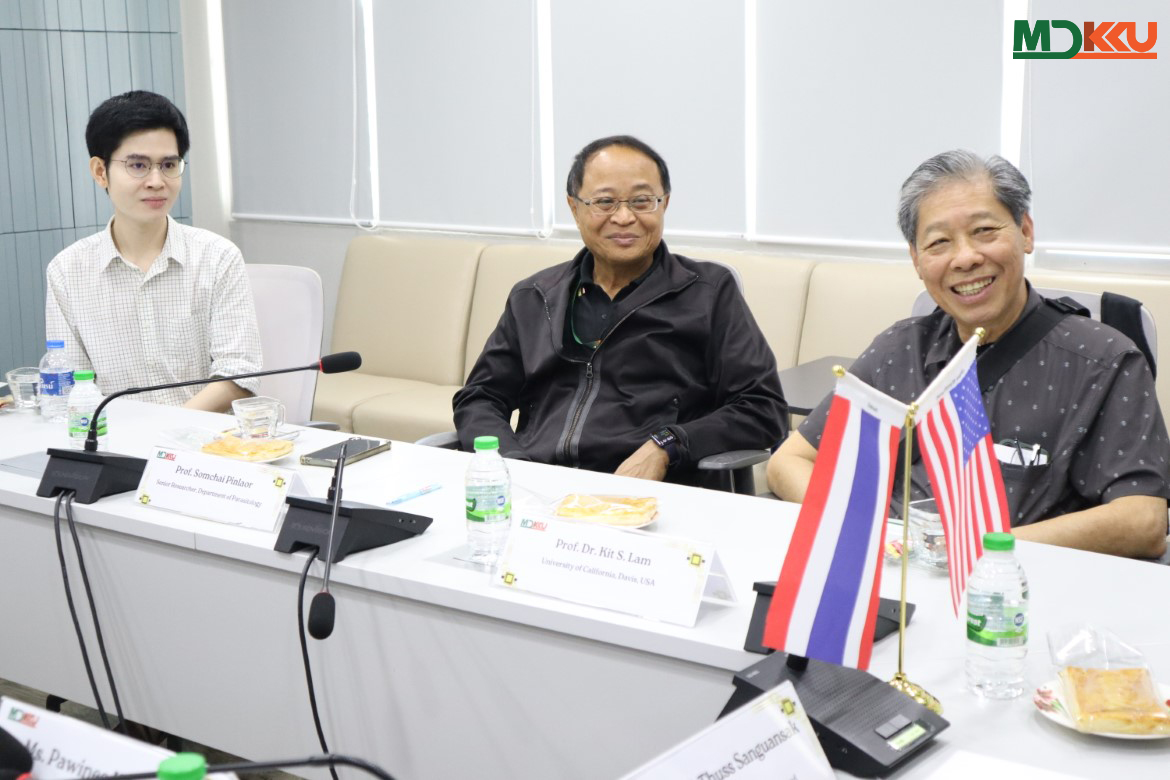 เมื่อวันที่ 24 พฤศจิกายน 2025 คณะแพทยศาสตร์ มหาวิทยาลัยขอนแก่น ตอกย้ำบทบาทสถาบันวิจัยชั้นนำของภูมิภาค ด้วยการต้อนรับ Prof. Dr. Kit S. Lam จาก Department of Biochemistry and Molecular Medicine, UC Davis Health, University of California, Davis สหรัฐอเมริกา โดยมี รศ. นพ. ธรรศ สงวนศักดิ์ รองคณบดีฝ่ายวิเทศสัมพันธ์และสื่อสารองค์กร ให้การต้อนรับอย่างเป็นทางการ พร้อมหารือแนวทางความร่วมมือทางวิจัยและวิชาการ เพื่อขยายงานวิจัยทางการแพทย์ของไทยสู่ระดับสากล และกระชับความสัมพันธ์ระหว่างสองสถาบัน พร้อมส่งเสริมการแลกเปลี่ยนบุคลากรด้านวิจัย