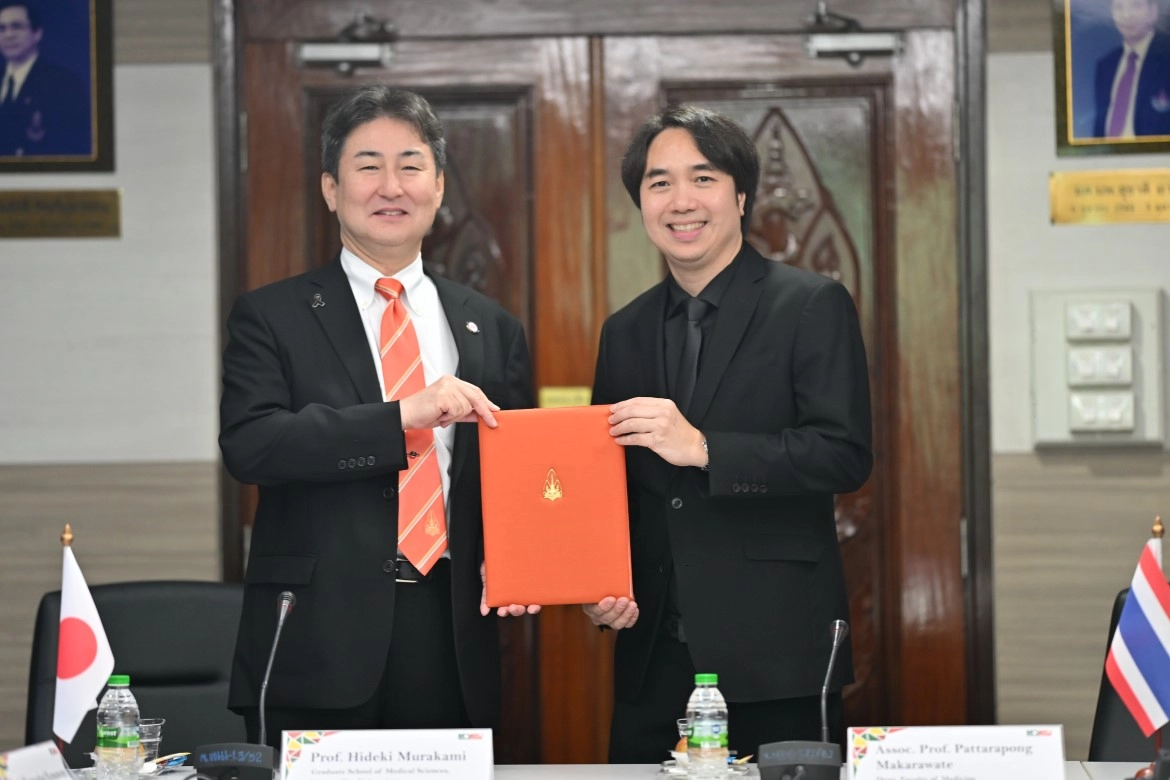ในพิธีส่งมอบบันทึกข้อตกลงความร่วมมือ รองศาสตราจารย์ นายแพทย์ภัทรพงษ์ มกรเวส คณบดีคณะแพทยศาสตร์ ได้กล่าวต้อนรับและส่งมอบ MOU ให้แก่ Professor Murakami โดยย้ำถึงความมุ่งมั่นในการเสริมสร้างความร่วมมือระหว่างสองสถาบันให้ก้าวหน้าอย่างเป็นรูปธรรม