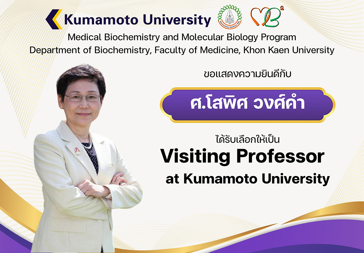 คณะแพทยศาสตร์ มหาวิทยาลัยขอนแก่น ขอแสดงความยินดีกับคณาจารย์สาขาวิชาชีวเคมี (Biochemistry) ในโอกาสได้รับการแต่งตั้งให้ดำรงตำแหน่ง Visiting Professors ณ Kumamoto University ประเทศญี่ปุ่น ได้แก่