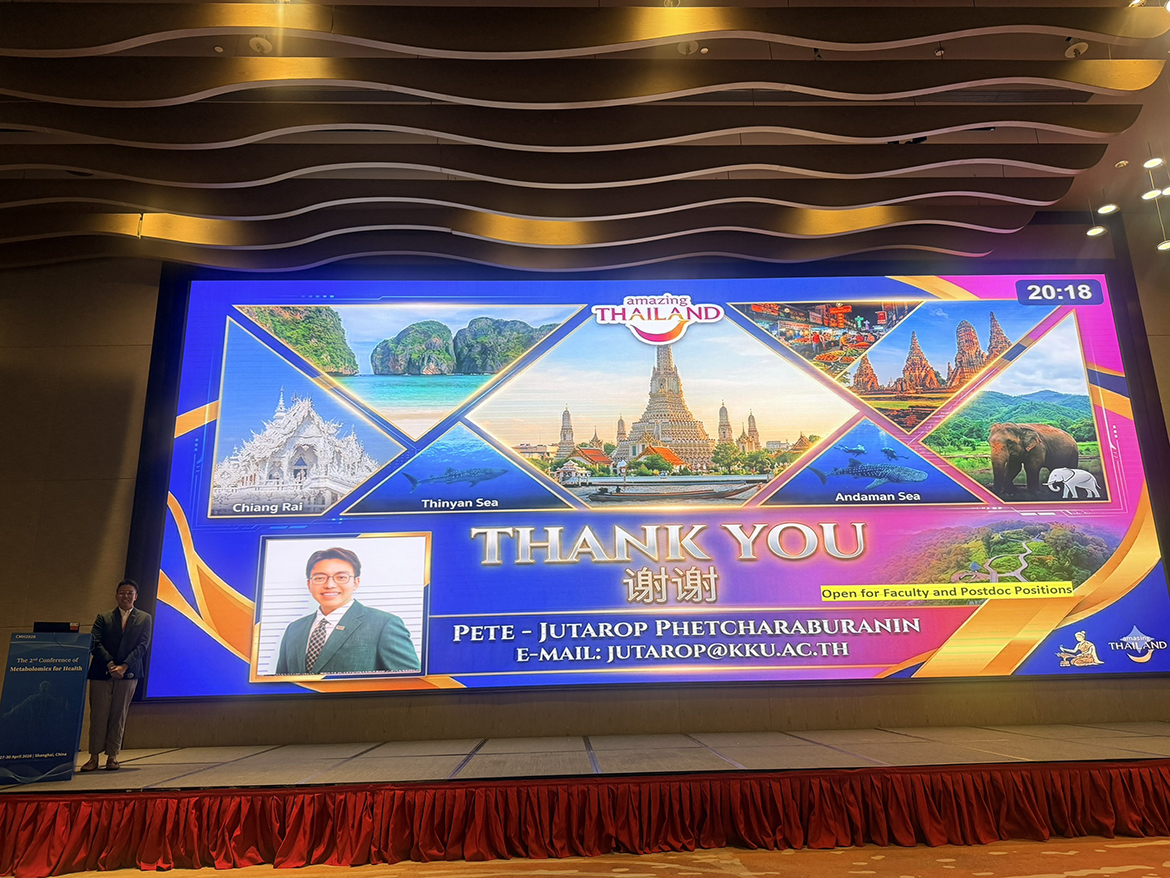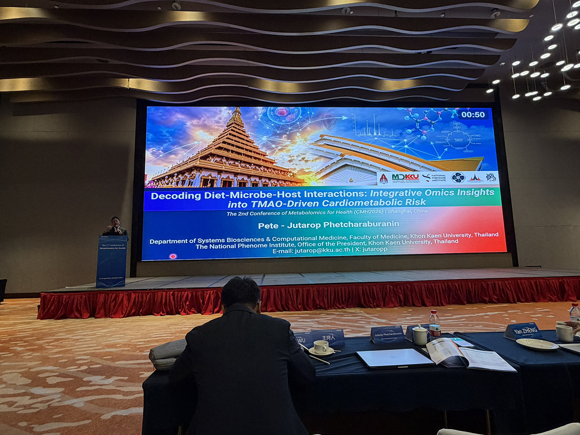 นครเซี่ยงไฮ้ 30 กันยายน 2569 – มหาวิทยาลัยขอนแก่น โดยคณะแพทยศาสตร์ และสถาบันฟีโนมแห่งชาติ (National Phenome Institute: NPI) สร้างความภาคภูมิใจอีกครั้งในเวทีวิชาการระดับนานาชาติ เมื่อ ผู้ช่วยศาสตราจารย์ ดร.จุฑารพ เพชระบูรณิน อาจารย์ประจำโครงการจัดตั้งสาขาวิชาชีววิทยาศาสตร์ระบบและการแพทย์เชิงคอมพิวเตอร์ คณะแพทยศาสตร์ และผู้อำนวยการสถาบันฟีโนมแห่งชาติ มหาวิทยาลัยขอนแก่น ได้รับเกียรติรับเชิญเป็น Invited Speaker ในการประชุมวิชาการระดับนานาชาติ The 2nd Conference of Metabolomics for Health 2026 (CMH2026) ซึ่งจัดขึ้นระหว่างวันที่ 27–30 เมษายน 2569 ณ นครเซี่ยงไฮ้ สาธารณรัฐประชาชนจีน