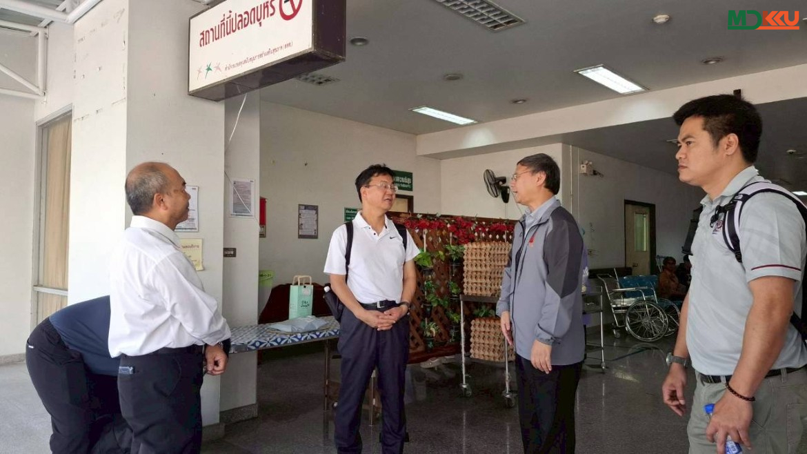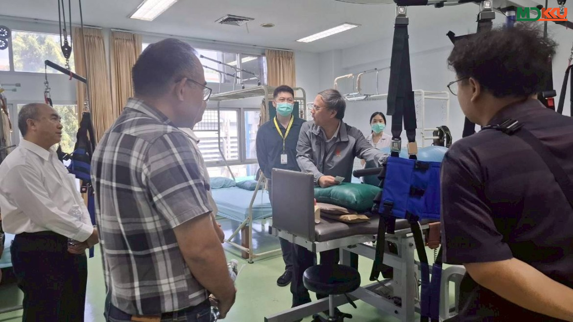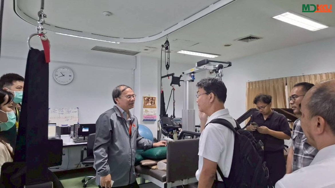จากนั้น คณะผู้บริหารและบุคลากรได้นำ Professor Yano เยี่ยมชมหน่วยงานภายในสาขา ได้แก่ ห้องปฏิบัติการ หอผู้ป่วยเวชศาสตร์ฟื้นฟู ห้องกายภาพบำบัด และห้องกิจกรรมบำบัด เพื่อแลกเปลี่ยนประสบการณ์ด้านการดูแลผู้ป่วย รวมถึงแนวทางการบูรณาการเทคโนโลยีเข้ากับกระบวนการฟื้นฟูสมรรถภาพอย่างเป็นระบบ