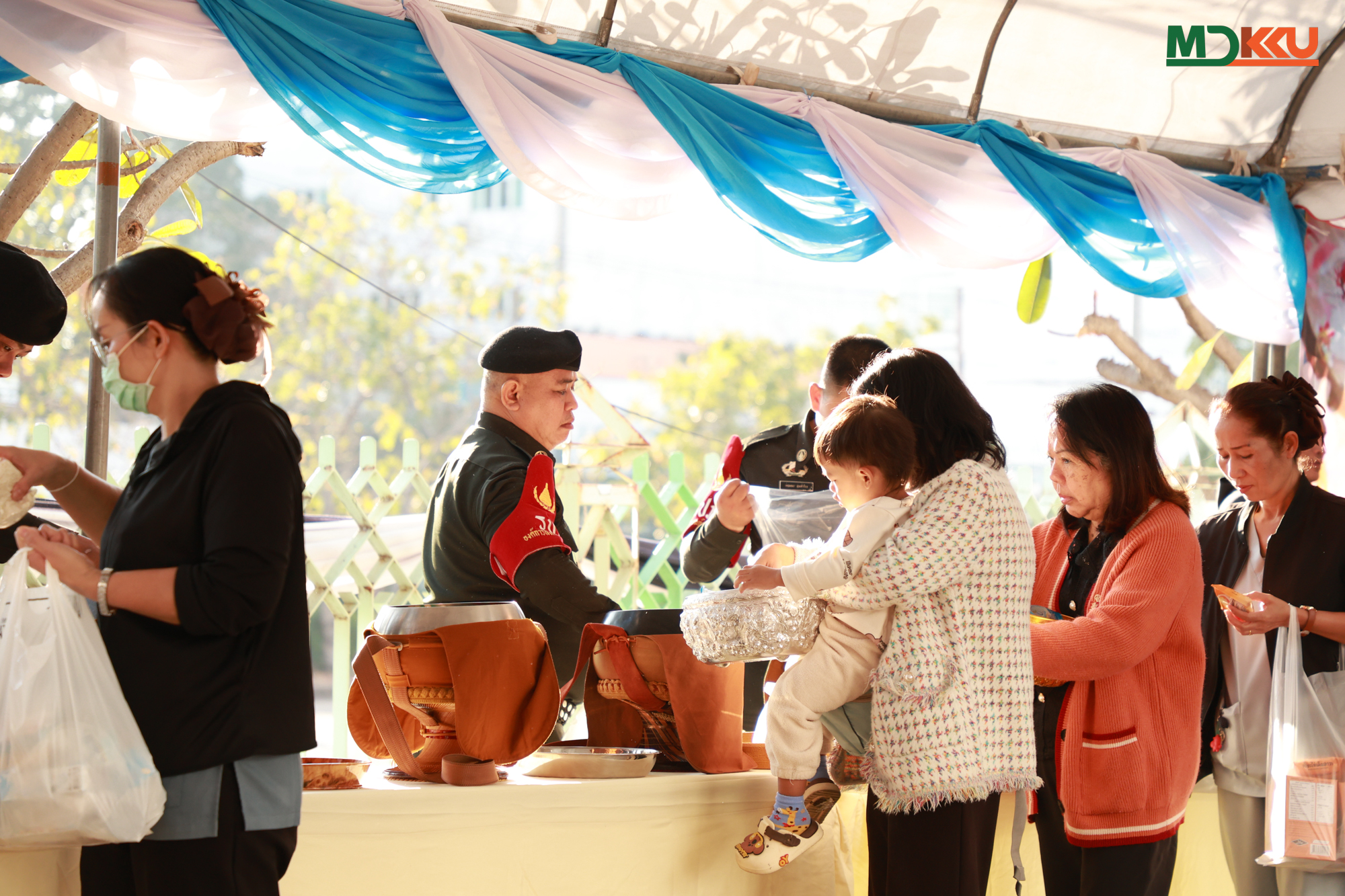 ภายในงานได้จัดให้มีพิธีทำบุญตักบาตรพระภิกษุสงฆ์จำนวน 34 รูป โดยได้รับเมตตาจากหลวงปู่ยูวิน ภูริปัญโญ เป็นประธานฝ่ายสงฆ์ และพิธีเจริญจิตภาวนาเพื่อถวายความอาลัยและน้อมรำลึกในพระมหากรุณาธิคุณ สมเด็จพระนางเจ้าสิริกิติ์ พระบรมราชินีนาถ พระบรมราชชนนีพันปีหลวง ผู้ทรงพระกรุณาพระราชทานพระนามาภิไธยเพื่อเป็นเกียรติ และเป็นขวัญกำลังใจแก่บุคลากร เป็นที่พึ่งของประชาชน