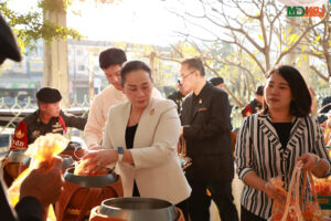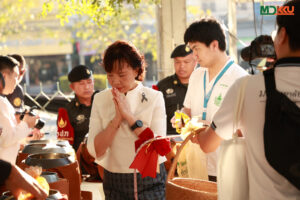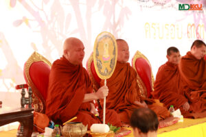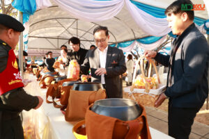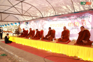 ภายในงานได้จัดให้มีพิธีทำบุญตักบาตรพระภิกษุสงฆ์จำนวน 34 รูป โดยได้รับเมตตาจากหลวงปู่ยูวิน ภูริปัญโญ เป็นประธานฝ่ายสงฆ์ และพิธีเจริญจิตภาวนาเพื่อถวายความอาลัยและน้อมรำลึกในพระมหากรุณาธิคุณ สมเด็จพระนางเจ้าสิริกิติ์ พระบรมราชินีนาถ พระบรมราชชนนีพันปีหลวง ผู้ทรงพระกรุณาพระราชทานพระนามาภิไธยเพื่อเป็นเกียรติ และเป็นขวัญกำลังใจแก่บุคลากร เป็นที่พึ่งของประชาชน