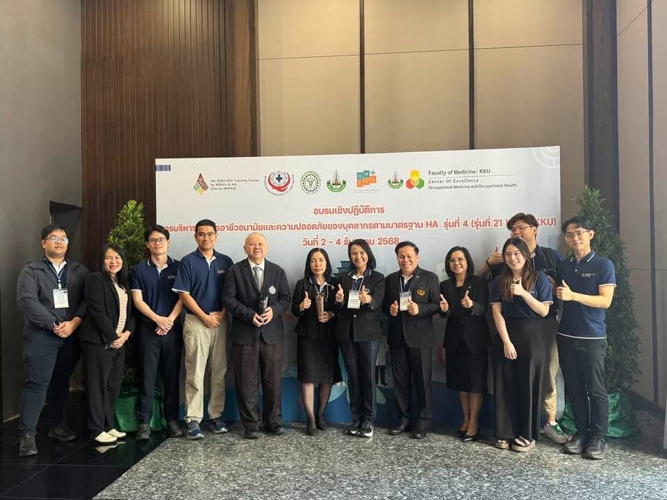 เมื่อวันที่ 2 – 4 ธันวาคม 2568 คณะแพทยศาสตร์ มหาวิทยาลัยขอนแก่น โดย ศ.ดร.พญ.เนสินี ไชยเอีย ซึ่งเป็นผู้อำนวยการหลักสูตร ร่วมกับสถาบันรับรองคุณภาพสถานพยาบาล (องค์การมหาชน) และสมาคมโรคจากการประกอบอาชีพและสิ่งแวดล้อมแห่งประเทศไทย ได้จัดการอบรมอบรมเชิงปฏิบัติการ การบริหารจัดการ