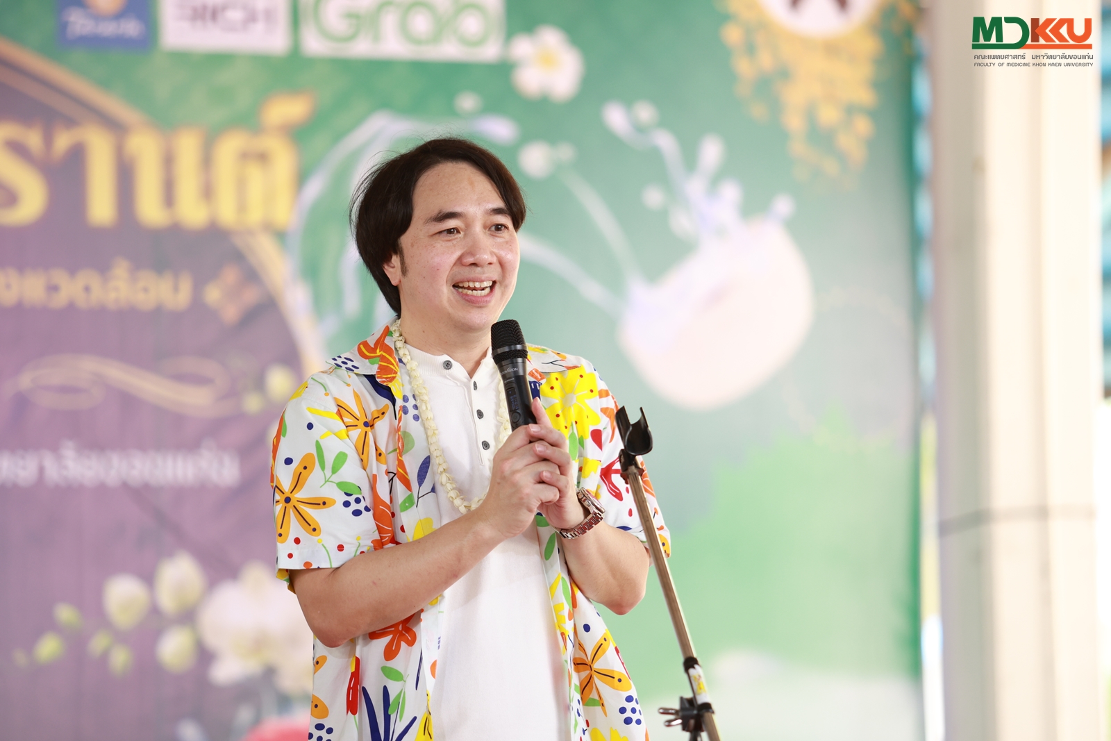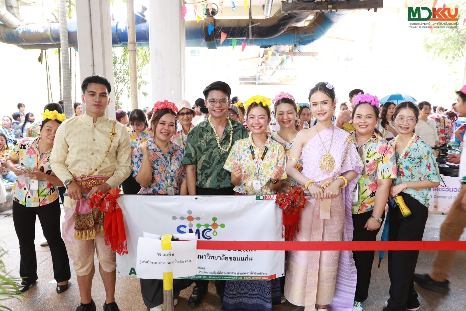 เมื่อวันที่ 10 เมษายน 2569 คณะแพทยศาสตร์ มหาวิทยาลัยขอนแก่น ภายใตการนำของ คณบดีคณะแพทยศาสตร์ มหาวิทยาลัยขอนแก่น รศ.นพ.ภัทรพงษ์ มกรเวส ได้จัดกิจกรรมวันสงกรานต์ประจำปี 2569 ขึ้นอย่างยิ่งใหญ่ ภายใต้แนวคิด “แพทยศาสตร์สงกรานต์ สืบสานวัฒนธรรม ร่วมกันอนุรักษ์พลังงานและรักษ์สิ่งแวดล้อม” โดยมีบุคลากรจากคณะแพทยศาสตร์ โรงพยาบาลศรีนครินทร์ และศูนย์หัวใจสิริกิติ์ฯ เข้าร่วมกิจกรรมอย่างพร้อมเพรียงกัน เพื่อส่งเสริมและอนุรักษ์ขนบธรรมเนียมประเพณีไทยอันดีงาม พร้อมปลูกจิตสำนึกด้านการอนุรักษ์พลังงานและสิ่งแวดล้อมให้กับบุคลากรทุกภาคส่วน