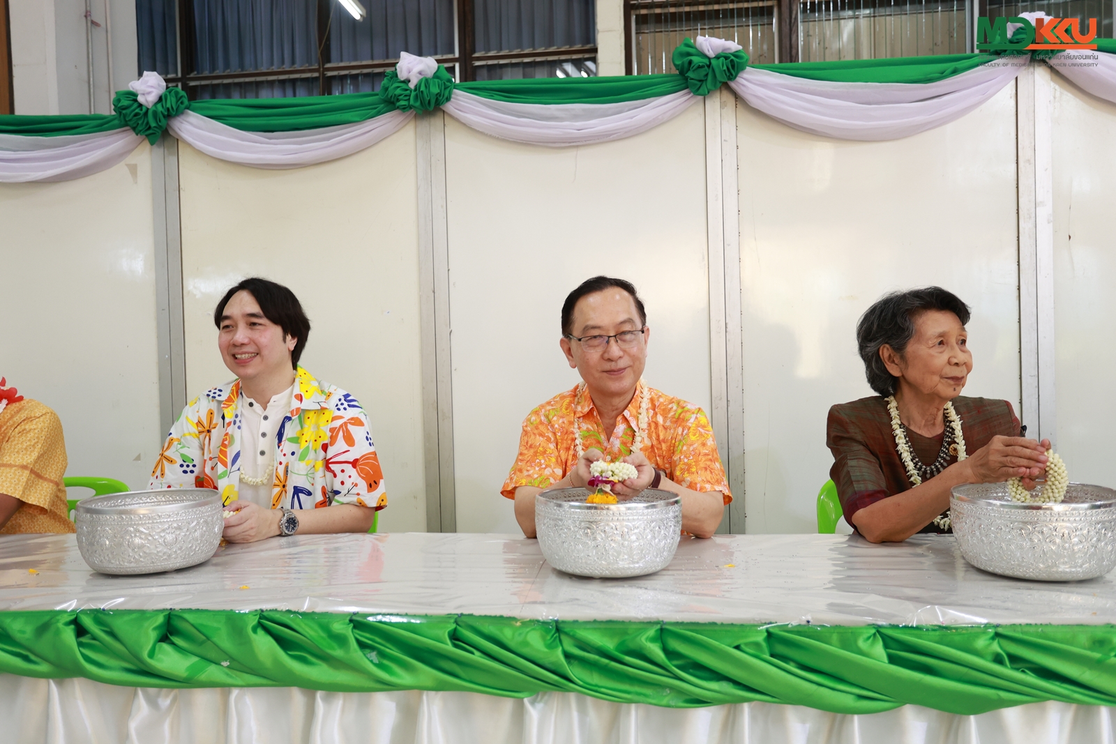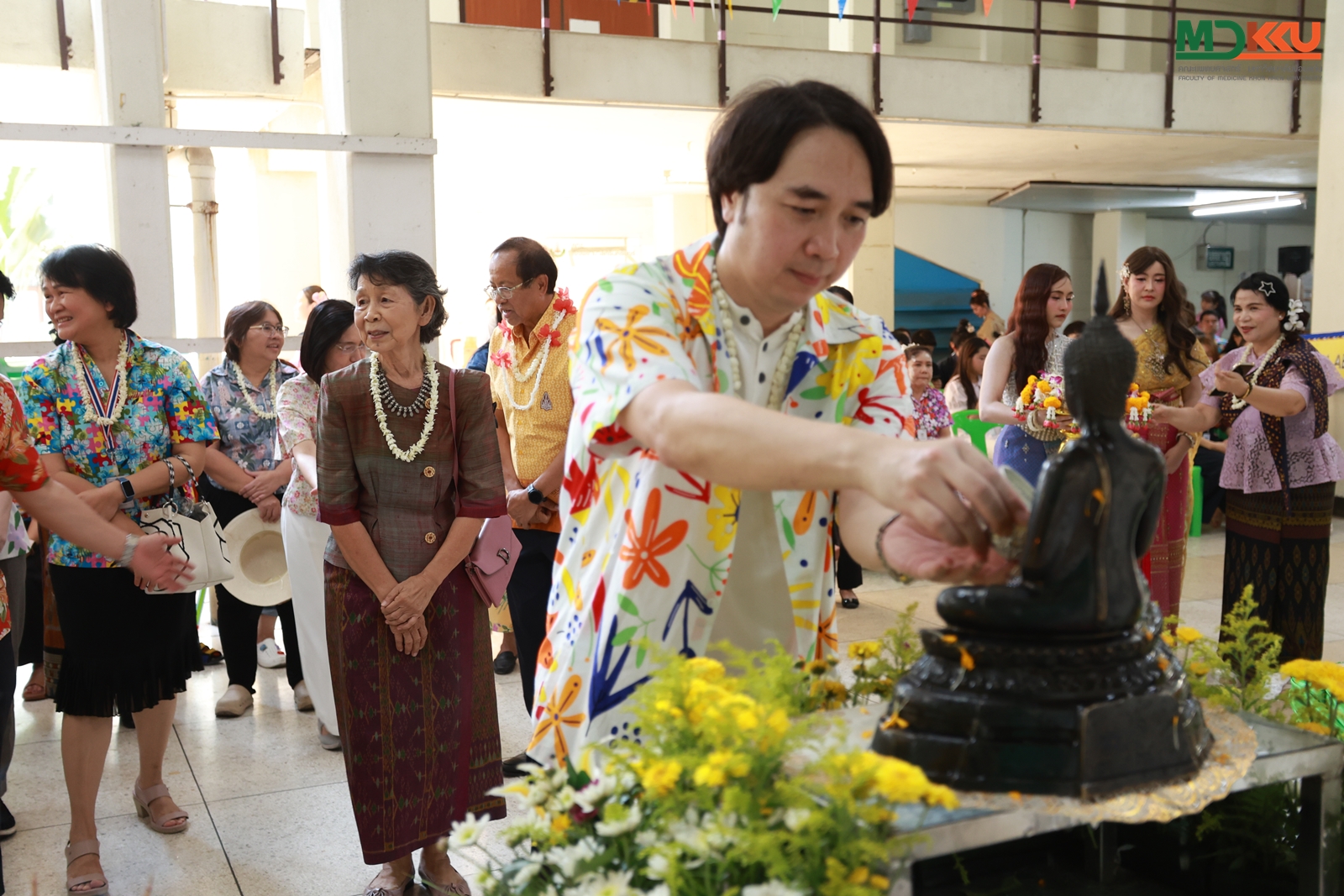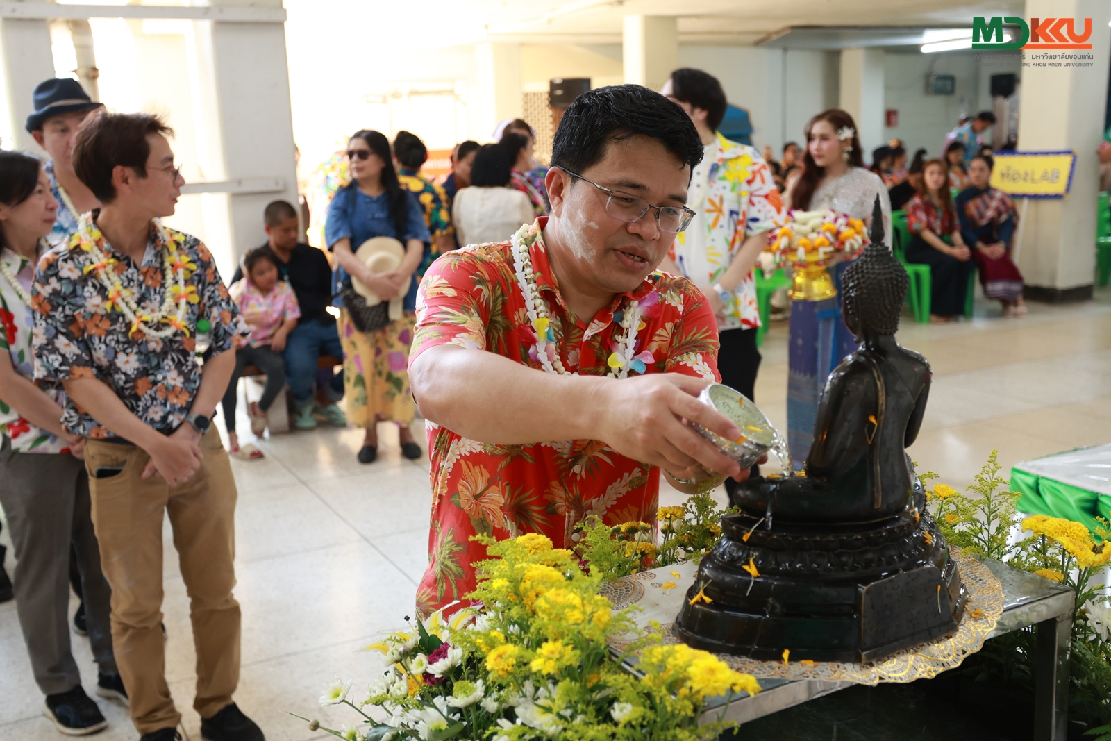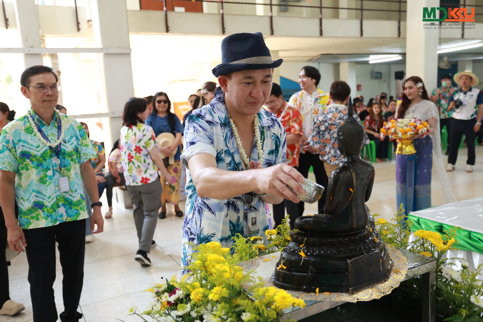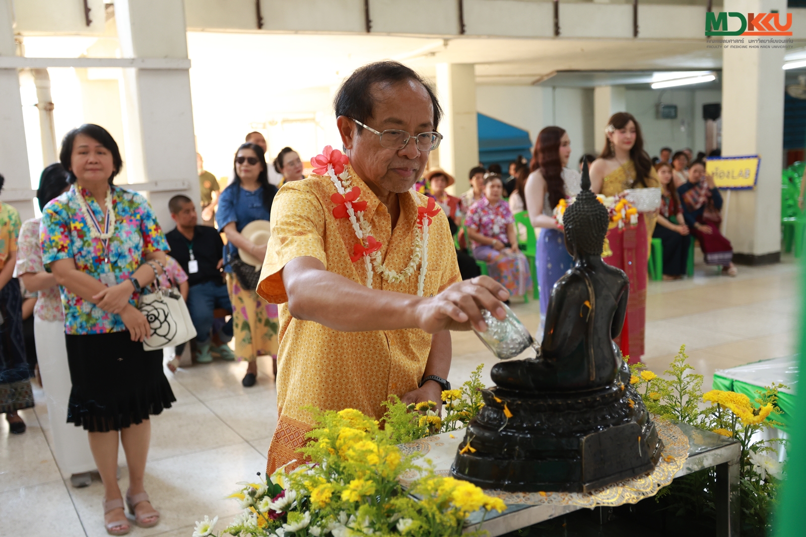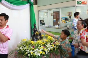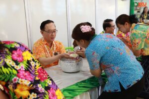 และพิธีรดน้ำดำหัว ซึ่งถือเป็นหัวใจสำคัญของประเพณีสงกรานต์ ได้รับเกียรติจาก รศ.นพ.ชาญชัย พานทองวิริยะกุล อธิการบดีมหาวิทยาลัยขอนแก่น พร้อมด้วยอดีตคณบดีคณะแพทยศาสตร์ คณะผู้บริหาร และผู้เกษียณอายุราชการ ร่วมให้พรอันเป็นมงคลแก่บุคลากรของคณะฯ