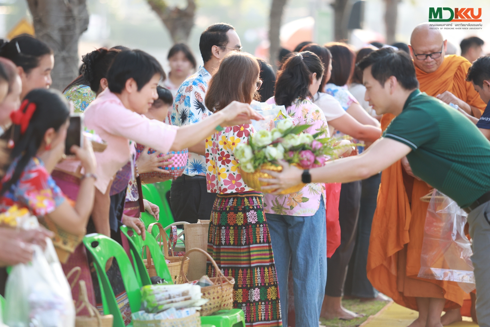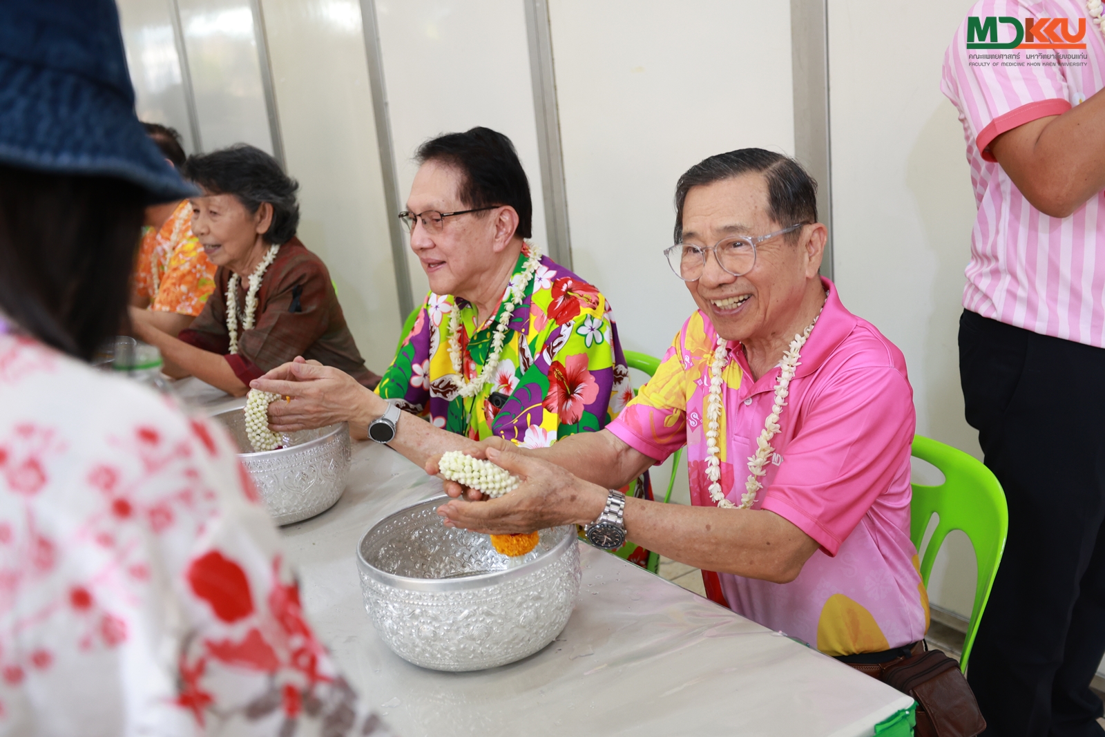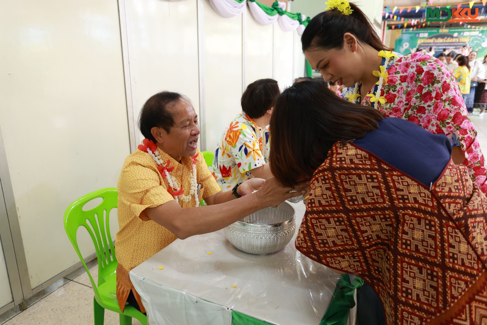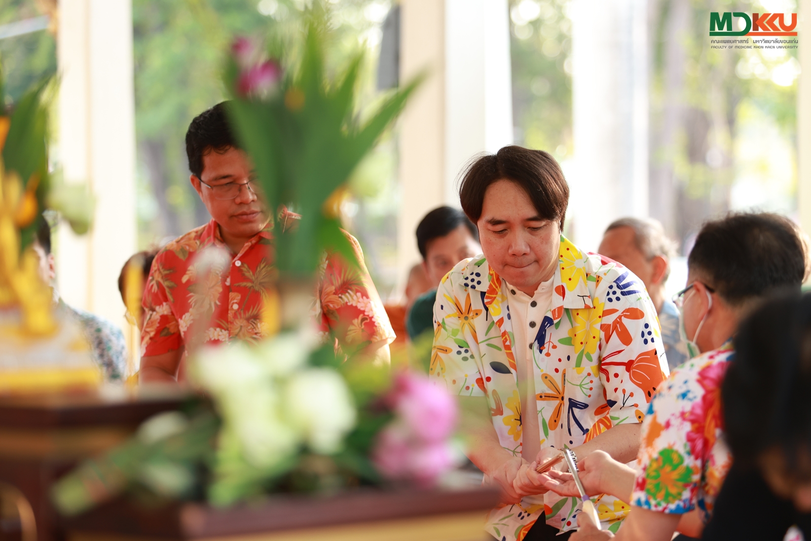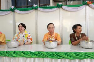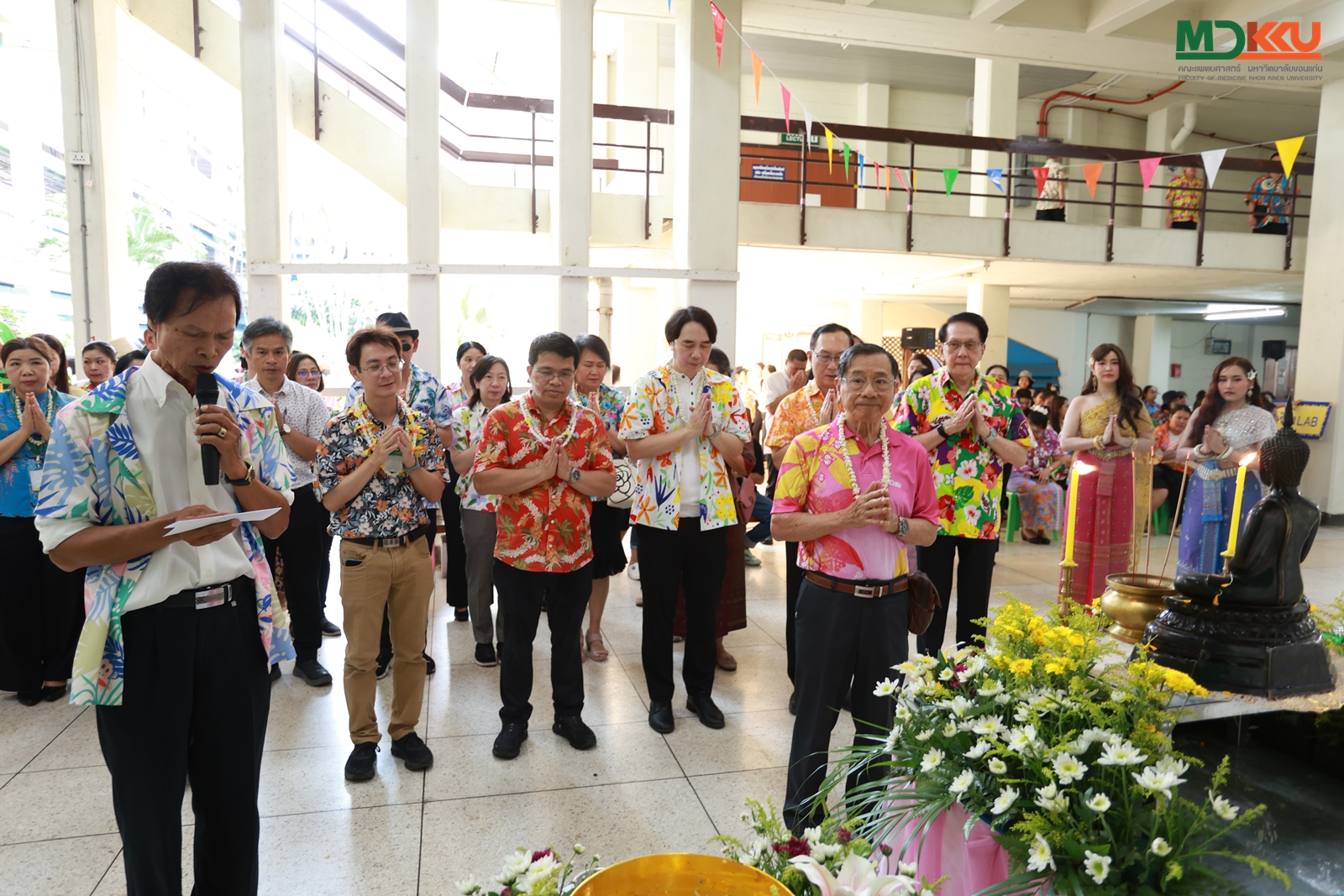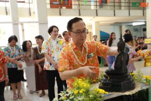 และพิธีรดน้ำดำหัว ซึ่งถือเป็นหัวใจสำคัญของประเพณีสงกรานต์ ได้รับเกียรติจาก รศ.นพ.ชาญชัย พานทองวิริยะกุล อธิการบดีมหาวิทยาลัยขอนแก่น พร้อมด้วยอดีตคณบดีคณะแพทยศาสตร์ คณะผู้บริหาร และผู้เกษียณอายุราชการ ร่วมให้พรอันเป็นมงคลแก่บุคลากรของคณะฯ