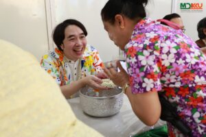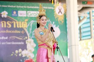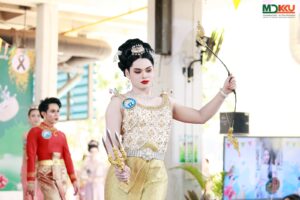ปิดท้ายด้วยกิจกรรมที่สร้างสีสันและเสียงเชียร์ได้อย่างคึกคัก กับการประกวดเทพีสงกรานต์คณะแพทยศาสตร์ ซึ่งเปิดโอกาสให้บุคลากรทุกภาคส่วนและทุกเพศเข้าร่วม สอดคล้องกับแนวคิดการส่งเสริมค่านิยมองค์กร “ACTS” อันประกอบด้วย “ปรับไว ใส่ใจบริการ ขับเคลื่อนงานด้วยนวัตกรรม และมุ่งทำเพื่อสังคม” กิจกรรมนี้ไม่เพียงสร้างความสนุกสนานและความสามัคคี แต่ยังเป็นเวทีในการแสดงออกถึงอัตลักษณ์และความภาคภูมิใจในความเป็นบุคลากรคณะแพทยศาสตร์ มหาวิทยาลัยขอนแก่น