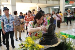 เริ่มต้นวันปีใหม่ไทยด้วยความเป็นสิริมงคล ด้วยพิธีทำบุญใส่บาตรพระสงฆ์จำนวน 9 รูป และพิธีเจริญพระพุทธมนต์ เนื่องในโอกาสวันขึ้นปีใหม่ไทย โดยได้รับเมตตาจาก พระมหาประทีป สญญโม, ดร. เจ้าอาวาสวัดท่าราษฎร์ เป็นประธานฝ่ายสงฆ์ในการประกอบพิธี